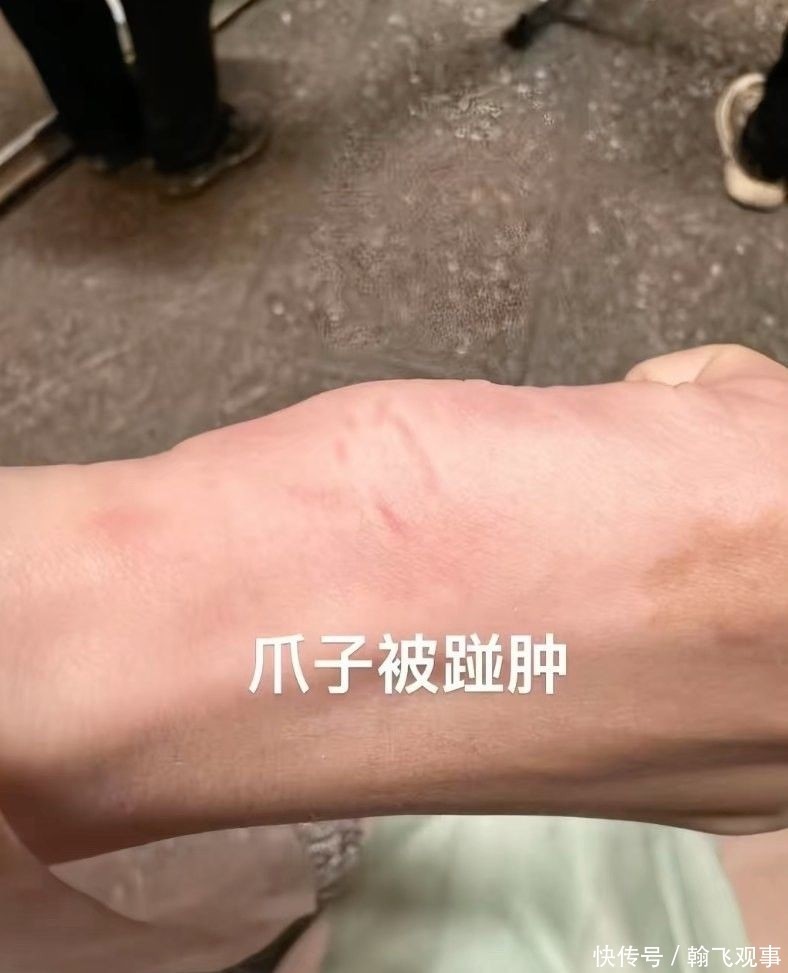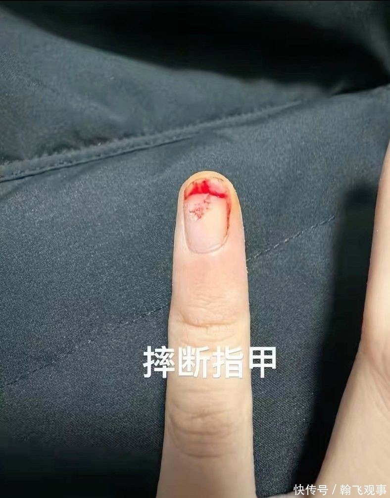 身体失控倒地时,右手无名指指甲当场翻起,剧烈的疼痛让她几乎无法站立。