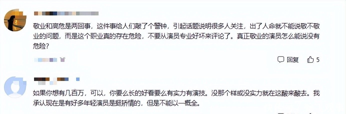 演员是一种职业身份,不应沦为“以命搏生”的牺牲者。
