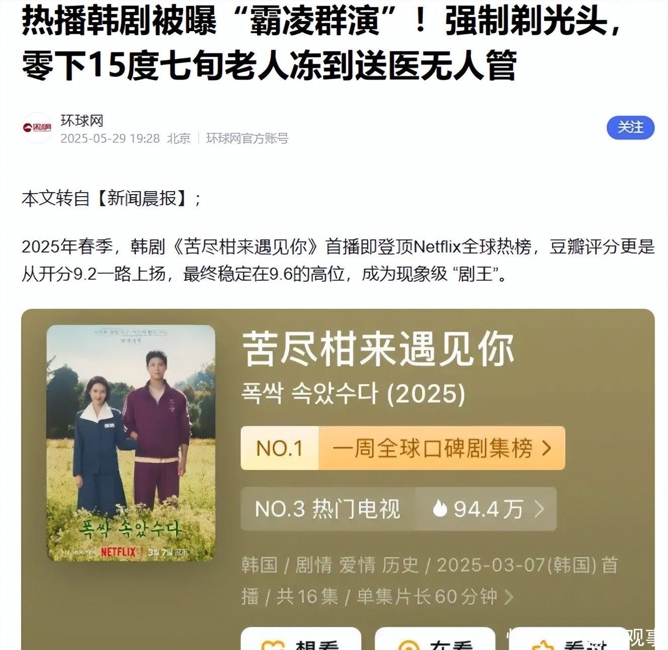 Netflix热门剧集《苦尽柑来遇见你》曾曝出群演受虐事件。