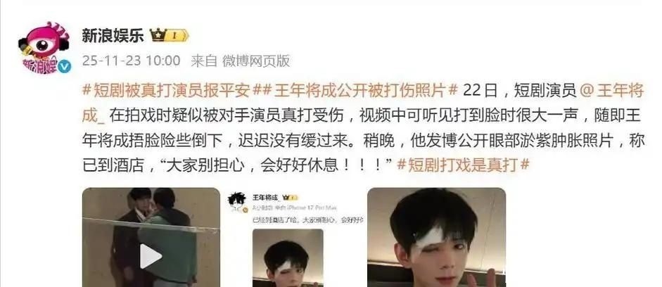 事后他通过社交平台通报伤情,涉事演员亦公开致歉。