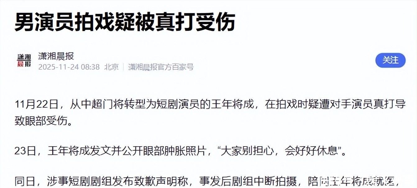 男演员拍戏疑被真打受伤.潇湘晨报.2025-11-24